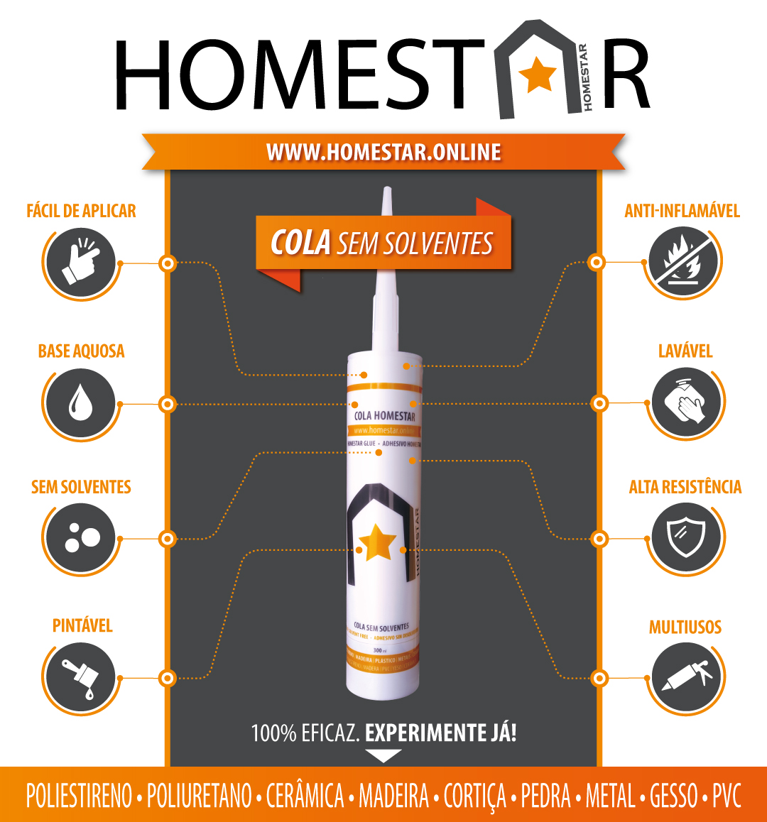 Cola de base Aquosa e Pintável, para aplicar em Sancas, Frisos, Rodapés, Rosetas ou outros produtos HOMESTAR em poliestireno e poliuretano. A cola HOMESTAR é um produto sem solventes que pode ser usada em outros aplicações de bricolage, construção ou no seu dia a dia. A cola HOMESTAR está disponivel para venda em Cola Cartucho de 300g, Cola Balde de 1,5 Kg e Cola Balde de 4Kg