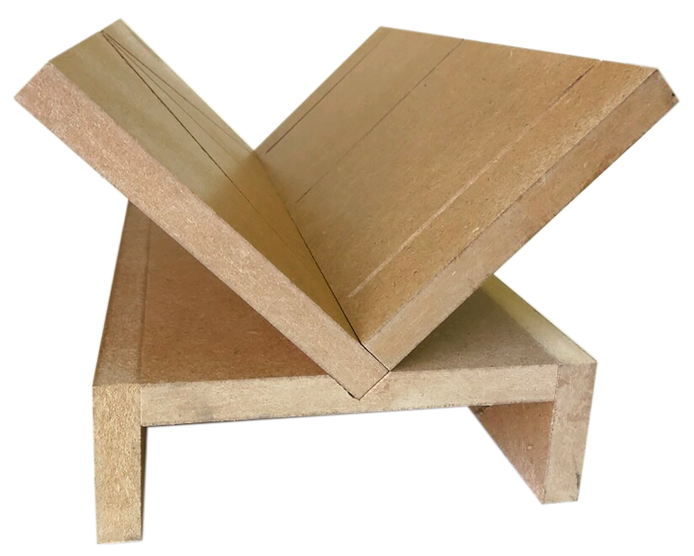 Tábua de corte de dupla face para aplicação de corte em produtos HOMESTAR em poliestireno ou poliuretano, como Perfil, Sancas, Frisos, Rodapés, Rosetas, Colunas, Pilastra, etc. A tábua de corte contém indicação fácil para aplicação de corte reto e para aplicação de corte para aplicar canto externo ou canto interno.