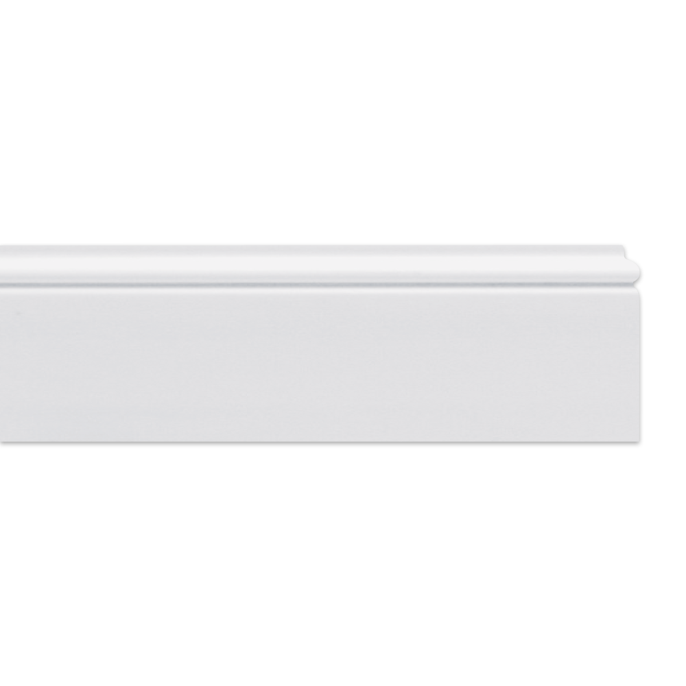 - Rodapé liso e branco, pronto para pintar (com uma tinta sem solvente)